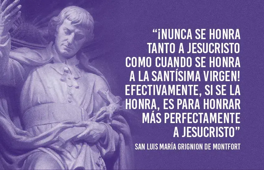 El segundo gran amor del Santo y el secreto de su impulso apostólico para ganar almas para Jesucristo fue, sin duda, la devoción a María Santísima. Convencido de que «por medio de la Santísima Virgen María vino Jesucristo al mundo y también por medio de Ella debe reinar en el mundo», escribió el Tratado de la Verdadera devoción a María. Proponiendo a todos la consagración total a Jesús por María en condición de esclavo total de María, como medio eficacísimo para alcanzar la santidad, siguiendo las huellas de Jesucristo quien se sujetó por completo al encarnarse en su seno.