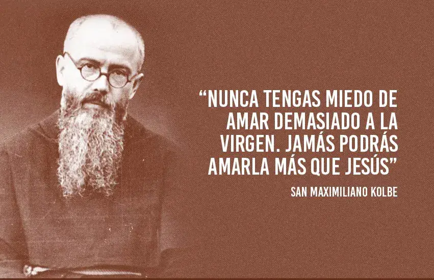Nuestro santo es conocido sobre todo por su sublime ofrecimiento en el campo de concentración y exterminio de Auschwitz, hace justo 80 años, cuando intercambió voluntariamente su persona por la de un padre de familia, el oficial del ejército polaco, Franciszek Gajowniczek, quien había sido seleccionado junto a otros nuevos presos para morir de sed e inanición en la terrible celda del hambre, en represalia por la huida de otro preso del Lager. Recibía así San Maximiliano su segunda corona, la roja, la del martirio, un martirio de caridad, que había escogido siendo niño. La primera corona, la blanca de la castidad, la había llevado fielmente hasta ese momento, profesando un gran amor esponsal a Cristo, a la Iglesia y una piedad filial perfecta, tierna y varonil, hacia la Inmaculada. Es conocido también este episodio en el que el pequeño Raimundo (nombre de pila de San Maximiliano), según reveló su madre, María Kolbe, al poco de tener noticia de la muerte de su hijo en Auschwitz, tuvo una aparición de la Virgen María en la iglesia parroquial de Pabianice. Así, estando preocupada su madre por el futuro de sus hijos, un día le regañó a Raimundo por algo que no había hecho bien el niño: «¿qué va a ser de ti?», le dijo. Aquella pregunta le dolió al niño. Su madre no hizo caso al principio, pero empezó a notar que Raimundo se acercaba con frecuencia, sin hacerse notar, a un altarcito que tenían en casa con la imagen de la Virgen de Czestochowa y allí rezaba llorando. Se le veía serio y pensativo. Viendo aquel comportamiento, ciertamente impropio a su edad, temiendo que estuviese enfermo, su madre le obligó por fin a decirle lo que pasaba. El pequeño Kolbe, llorando, le respondió: «Mamá, cuando me reprendiste, le pedí mucho a la Virgen que me dijera lo que iba a ser de mí. Luego en la iglesia se lo volví a pedir. Entonces se me apareció la Virgen con dos coronas en la mano, una blanca y otra roja. Me miraba con cariño. Me preguntó si quería aquellas dos coronas. La blanca significaba que perseveraría en la pureza. La roja, que llegaría a ser mártir. Yo le respondí que aceptaba las dos».
