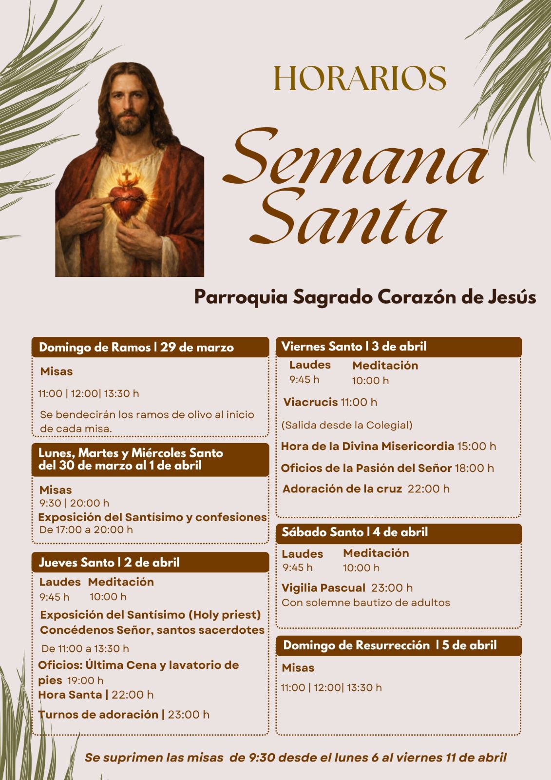 PARROQUIA DEL SAGRADO CORAZON SEMANA SANTA 2026
